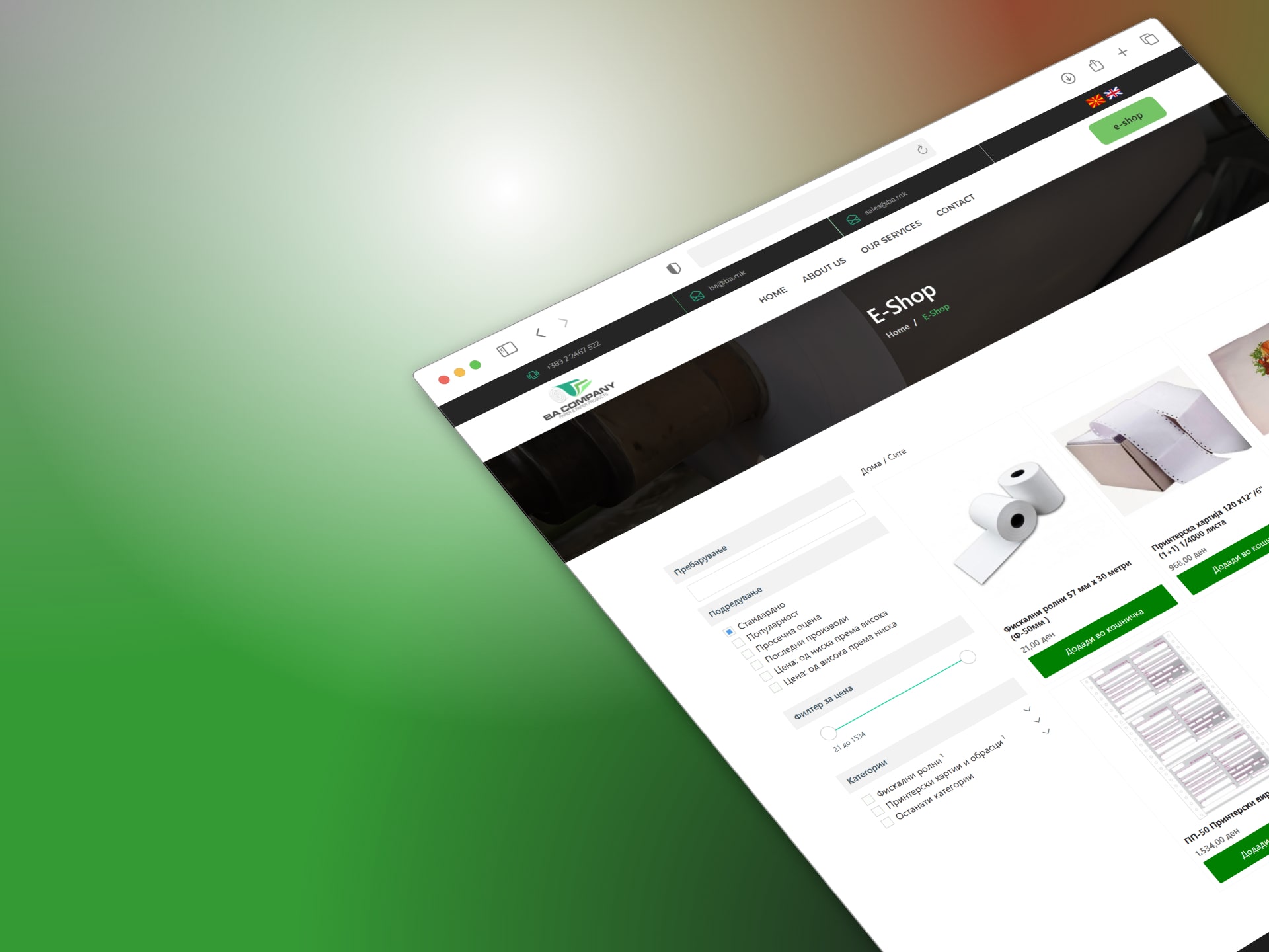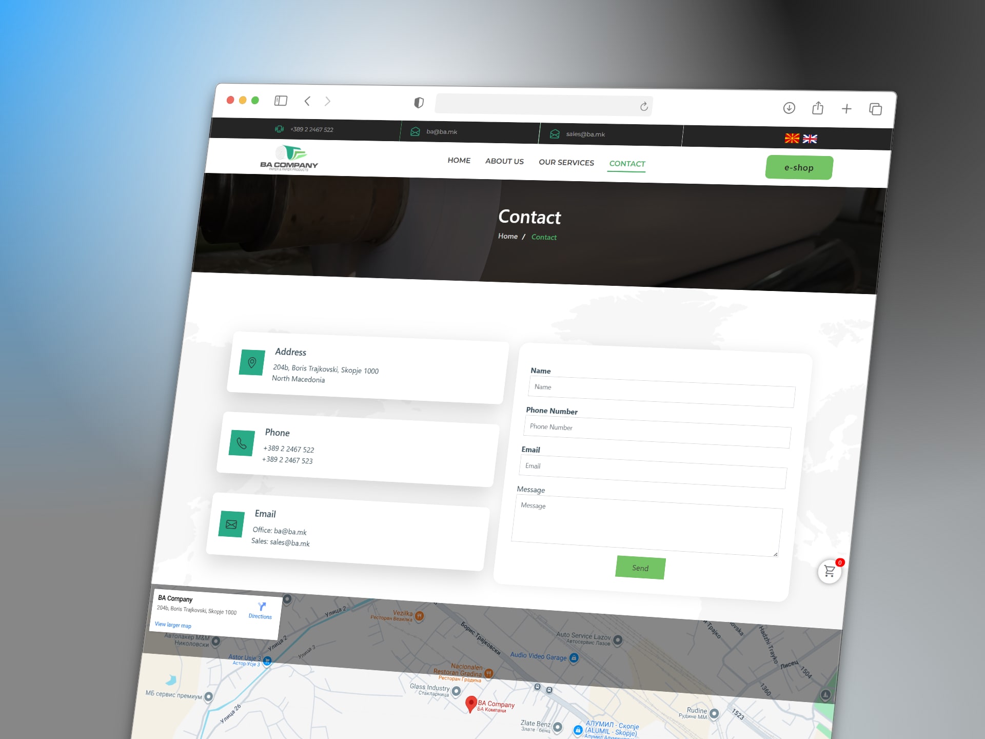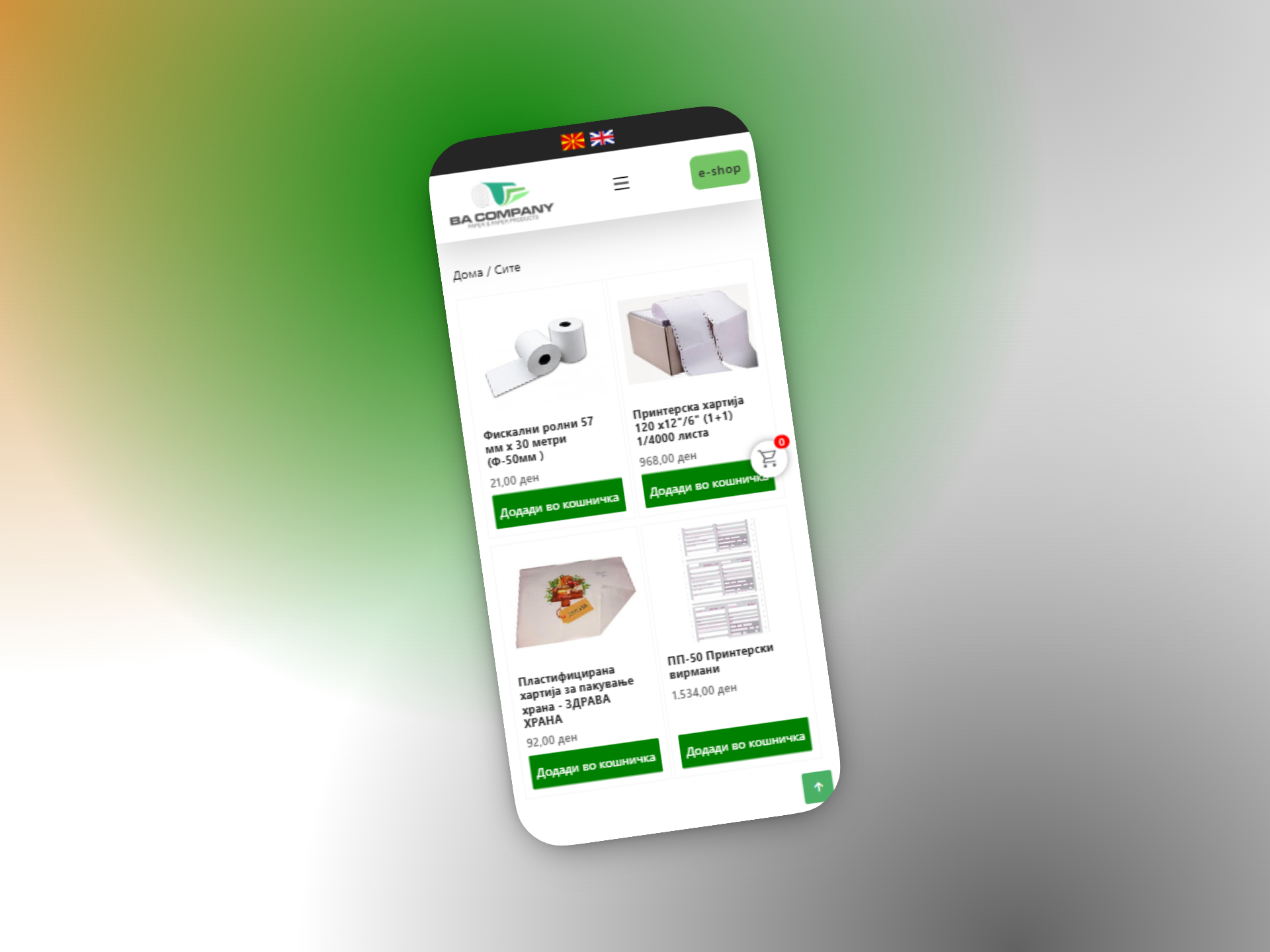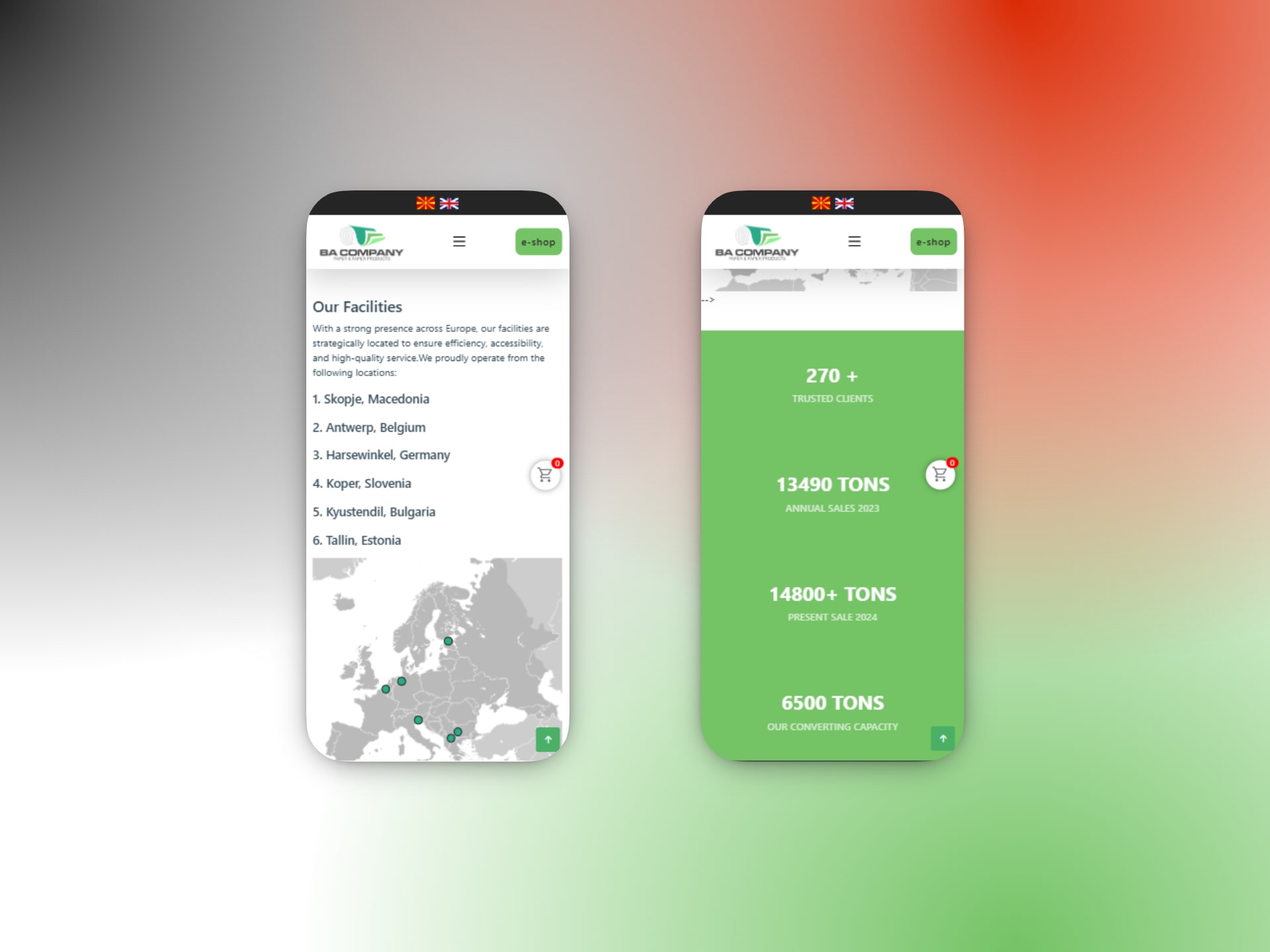 BA Company is a Macedonian paper and packaging supplier that needed a professional website to present its services and enable online sales. The goal was to design and develop a clean, modern, and fully responsive website that communicates trust and showcases their product range while allowing customers to make direct purchases through an integrated E-Shop.