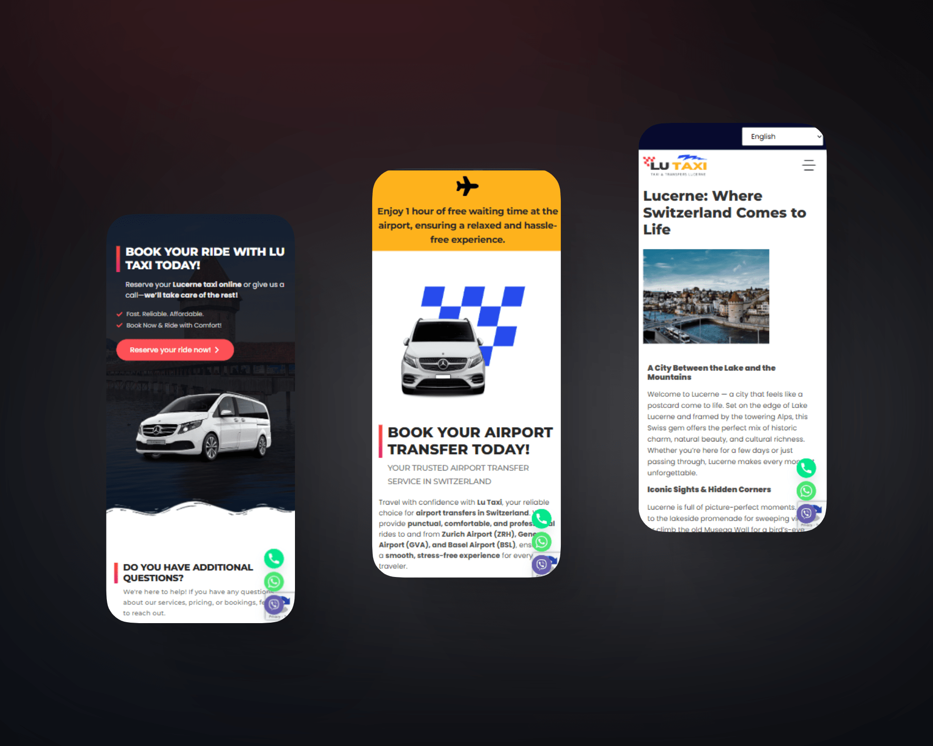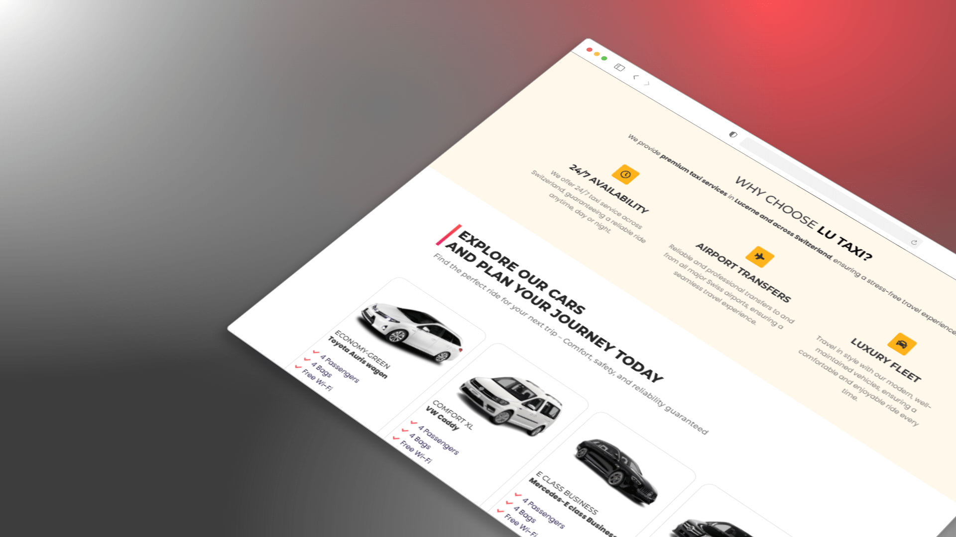 Lu Taxi is a professional 24/7 taxi service based in Lucerne, Switzerland, offering reliable local and long-distance transportation. The company caters to both private and business clients, with a fleet of vehicles suitable for airport transfers, city rides, and intercity travel. The objective was to design a multilingual website that clearly communicates the range of services, supports online booking, and builds trust with international users through a clean and accessible user interface.